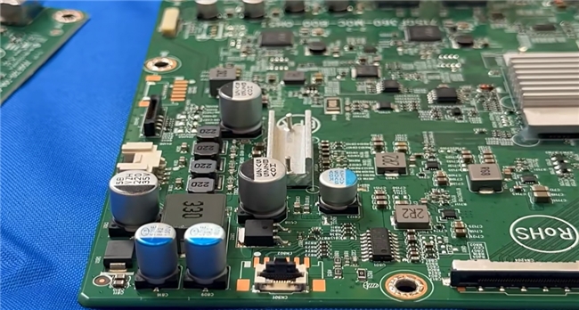 核心POWER区域,覆盖黑色防火麦拉,不仅能阻断火焰蔓延路径,还能通过物理隔离从根本上防止人员触电风险。独立的金属屏蔽隔片为电源板创造了专属工作空间,减少电路间干扰。此外,电源板材选用CEM-1级材料,兼具优良阻燃特性与抗弯曲强度,为显示器的持久稳定运行提供基础保障。
