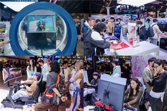 除此之外,展位上的大型圆偏光体验装置,使玩家能够直观感受全球首发的舒视蓝4.0护眼电竞显示器27M2N5501UK的卓越视效,并深入了解其实现护眼功能的原理;搭载《永劫无间》专属模式的QD-OLED显示器27M2N8800和27M2N8500X,智能调节色彩与明暗细节,以超高色域精准还原游戏世界的细腻画质。而在最具吸引力的电竞沉浸区,玩家们排成长队,体验赛车模拟器,瞬间领略32:9超长曲面屏49M2C8900所还原的真实驾驶视野;此外,在游戏座舱中,玩家们通过MiniLED双模电竞显示器32M2N6800XD畅玩《逃离塔科夫》,感受大屏高清视效下的沉浸游戏体验。