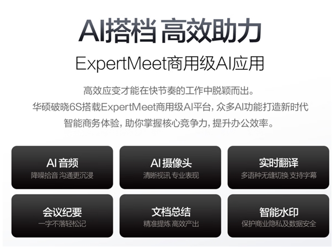 针对高频远程会议场景,华硕破晓6S锐龙版内置的ExpertMeet AI会议助手成为提升效率的关键。其AI降噪拾音功能可有效过滤环境杂音,确保人声清晰;高清摄像头配合智能影像优化,在不同光线下均可呈现清晰画面。实时翻译与自动会议纪要功能,显著简化跨语言沟通与信息整理流程,会后可快速生成摘要,助力团队聚焦核心决策。