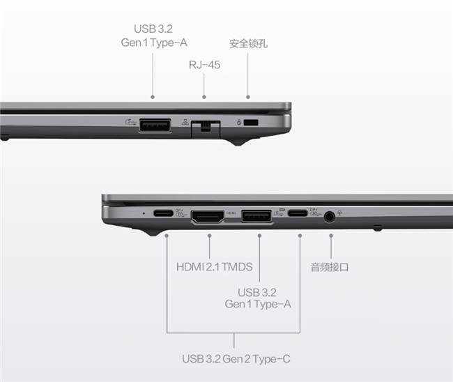 为适应多变的办公环境,华硕破晓6S 锐龙版配备了全面的I/O接口,包括2个USB 3.2 Type-A、2个USB 3.2 Type-C、HDMI 2.1及RJ-45网口。无需额外扩展坞,即可直连显示器、投影仪、有线网络及各类外设,快速搭建高效工作环境。