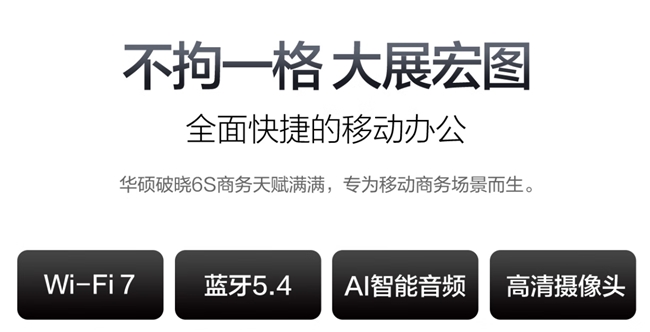华硕破晓6S 锐龙版以卓越性能为核心,围绕智能会议平台、全场景连接与长效续航构为企业职员提供了应对灵活办公模式的完整解决方案。它不仅是完成工作的工具,更是提升团队协作效率、赋能个人在任何地点都能保持专业与高效的智能伙伴。