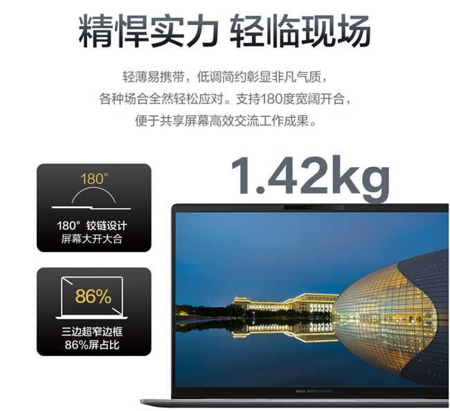 整机采用全金属机身设计,坚固耐用,整机重量轻至约1.42kg,深空灰配色彰显专业沉稳气质,轻松装入背包,伴随用户从容应对从公司到客户现场,从机场到咖啡厅的各种办公场景切换。