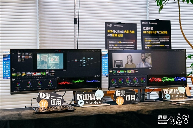 尼康Z CINEMA视频创意营活动中,飞利浦多款商用显示器以其卓越性能成为创作者瞩目的焦点。从超宽屏剪辑体验,到曲面沉浸式调色,再到互动化色彩对比,飞利浦始终围绕“专业标准”与“视觉信任”展开场景化演绎。