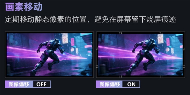 为降低QD-OLED烧屏风险,32M2N8900X还设有屏幕保护程序,通过像素移动、像素刷新、自动降低屏幕亮度、任务栏调光等方式,全方位保障屏幕长期稳定使用,守护面板寿命!