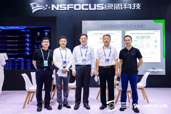 中国网络空间安全协会秘书长李欲晓(左三)一行莅临绿盟科技展台参观指导